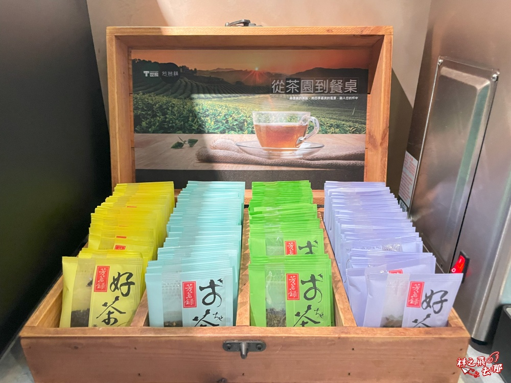 • 茶包區:數十款茶包自由選擇,還有熱水機與茶杯