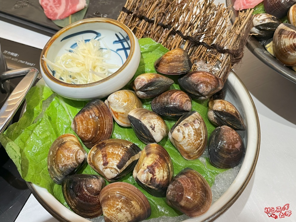 海鮮盤大滿足 我們還加點了海鮮拼盤與單點蛤蜊:海鮮盤裡有干貝、鮑魚、天使紅蝦、草蝦、花枝、鱸魚、魴魚等,種類多而且擺盤漂亮。