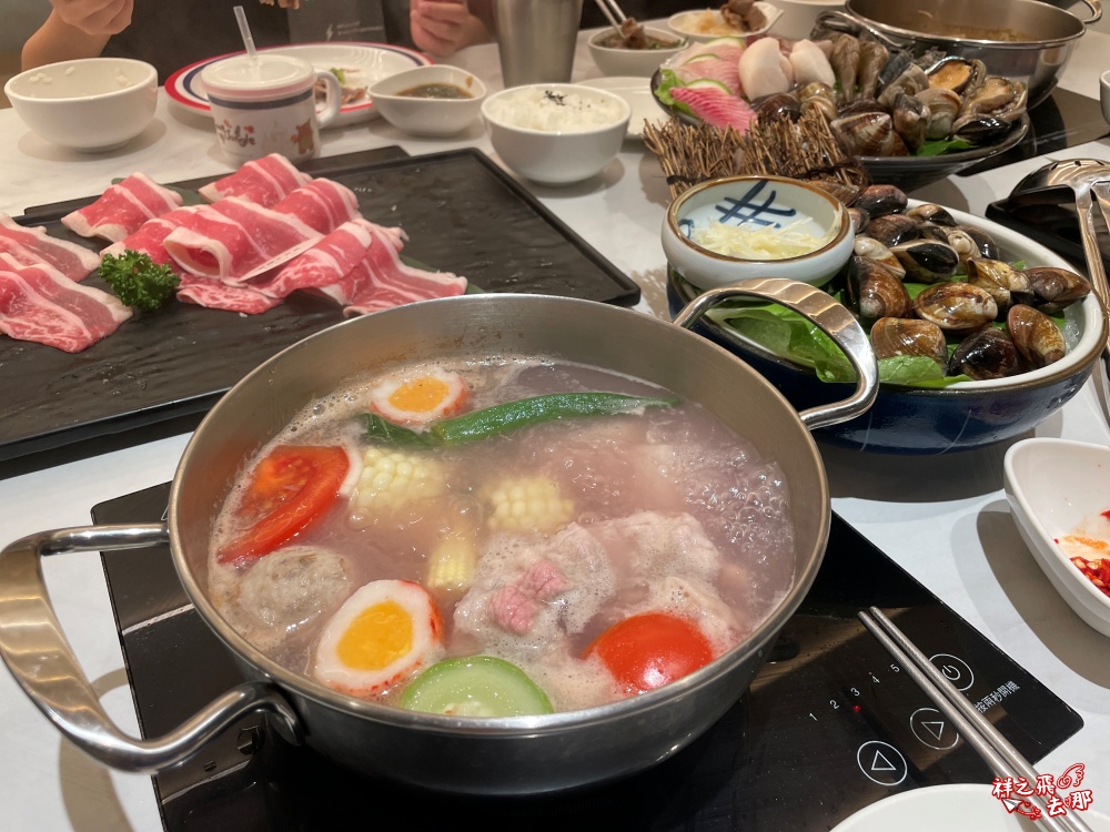 食材表現很穩定,肉盤油花均勻,搭配不油不膩的湯底吃起來順口不膩。菜盤給得也很有誠意,像紫地瓜、番茄、豆腐、絲瓜、玉米、香菇、豆皮等都有,不會只有葉菜類。